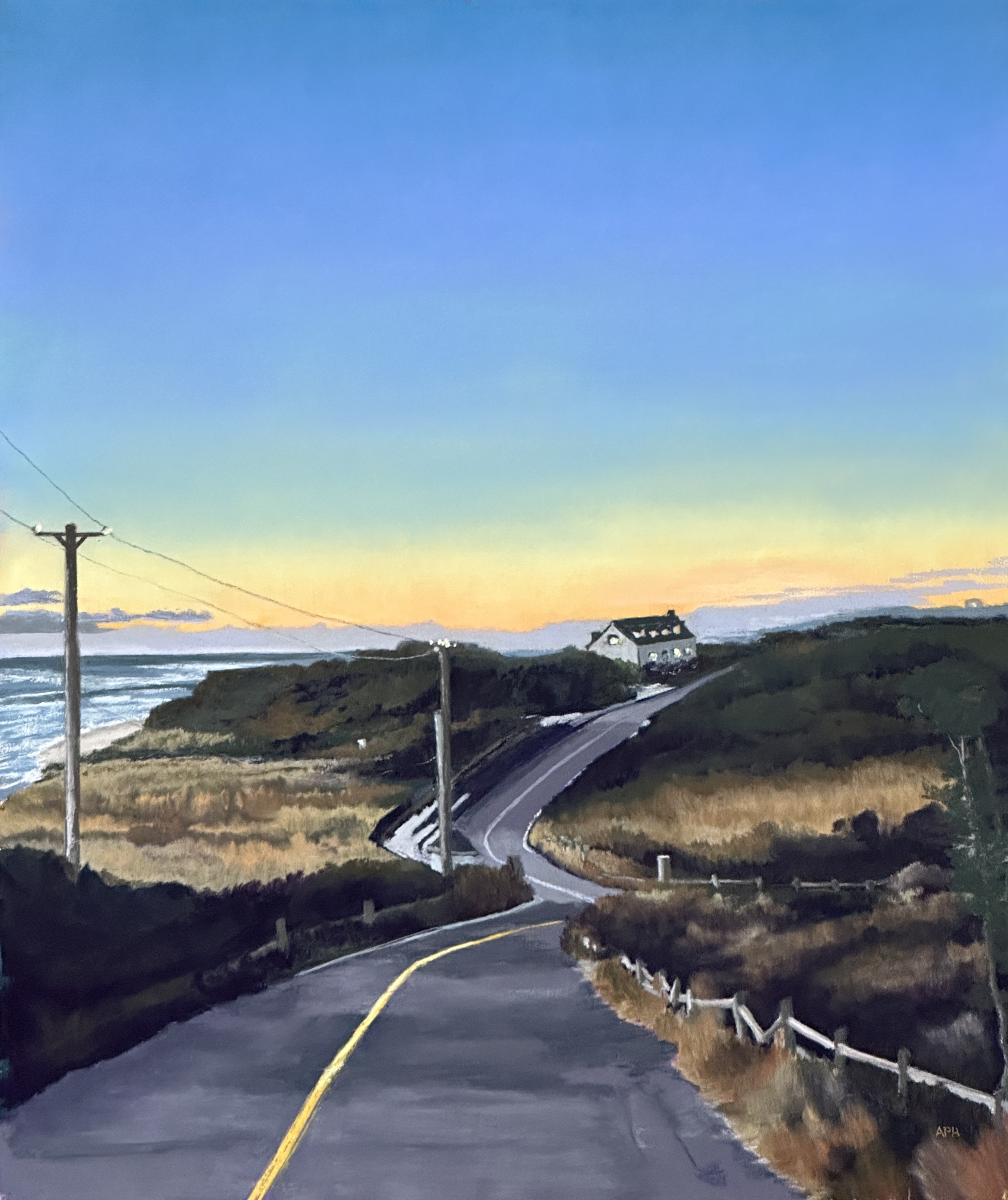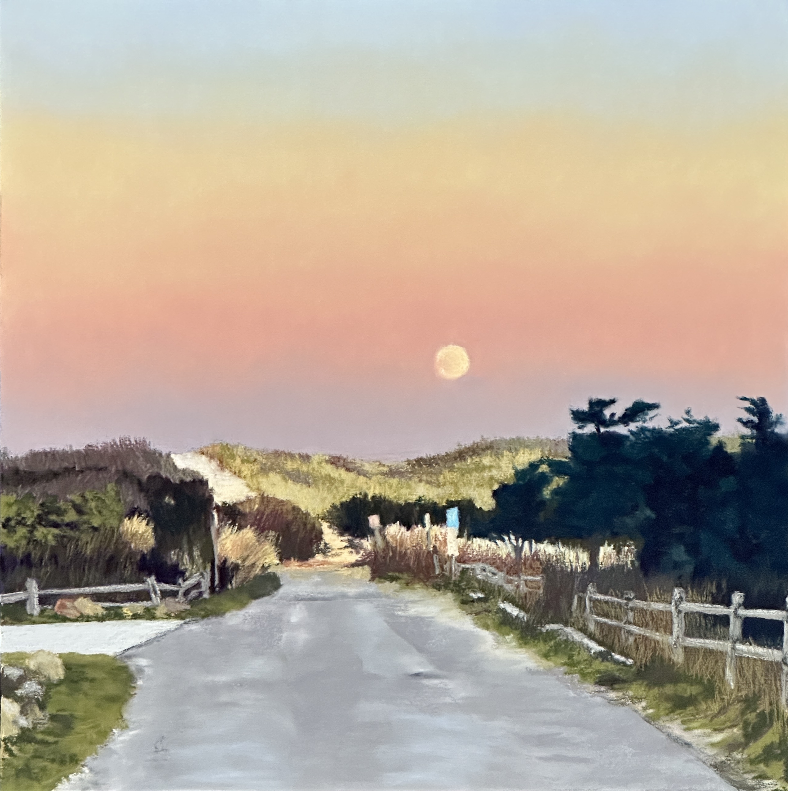 Final Turn, 9″ x 12″ (Sold)Shortcut to Sconset 24″ x 36″ (Sold)Harbor Memory, 9″ x 9″ (Sold)All Over Twilight 12″ x 12″ (Sold)Violet Road 25″ x 19″ (Sold) Clearing Storm, 12″ x 16″ (Sold)Building Patience, 20″ x 17″ Featherweight Evening, 21″ x 27″ Night Approach 19″ x 25″ (Sold)Getting There 20″ x 16″ (Sold)Set Your Clocks, 10″ x 9″ (Sold)Clearing Storm, New Bedford 12″ x 16″ (Sold)Late Afternoon, Wauwinet Road, 12″ x 12″ (Sold)Just Married, 26″ x 38″ (Sold)Full Moon, Quidnet, 12″ x 12″ (Sold)Secret View, 7″ x 7″ (Sold)Pink Horizon, 14″ x 20″ (Sold)